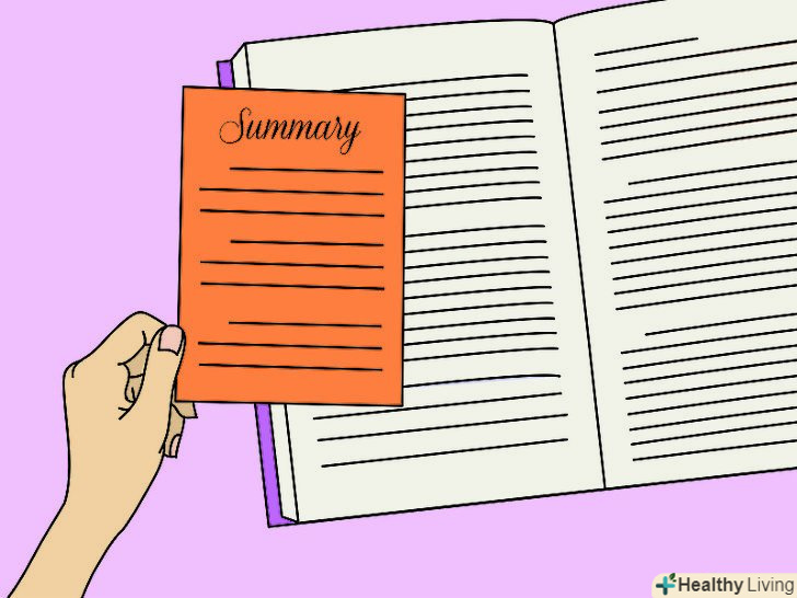 - Почніть з того, що резюмуйте кожну главу в одному-двох реченнях. Потім зв'яжіть їх між собою.