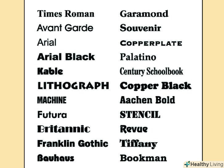 Використовуйте стандартний шрифт.незважаючи на можливе бажання використовувати якийсь більш цікавий шрифт, найкраще не відходити від стандартних варіантів на кшталт Times New Roman, який звичний і відображається на самих різних пристроях.[33]- Використовуйте в синопсисі той же шрифт, яким надрукована ваша книга. Можливо, разом з синопсисом ви докладете приклади деяких глав, тоді в ваших документах буде простежуватися однаковість.