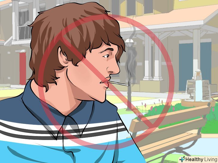 Не паліть.в результаті куріння звужуються капіляри і дрібні кровоносні судини, що ускладнює вільне переміщення рідини по організму. Через цю шкідливу звичку погіршується постачання шкіри киснем і необхідними поживними речовинами, які переносяться кров'ю. Крім того, куріння призводить до того, що шкіра стає менш пружною.[13]- Якщо вам потрібна допомога, щобвідмовитися від куріння, порадьтеся зі своїм лікарем. Є безліч допоміжних засобів і ресурсів для тих, хто хоче кинути палити.