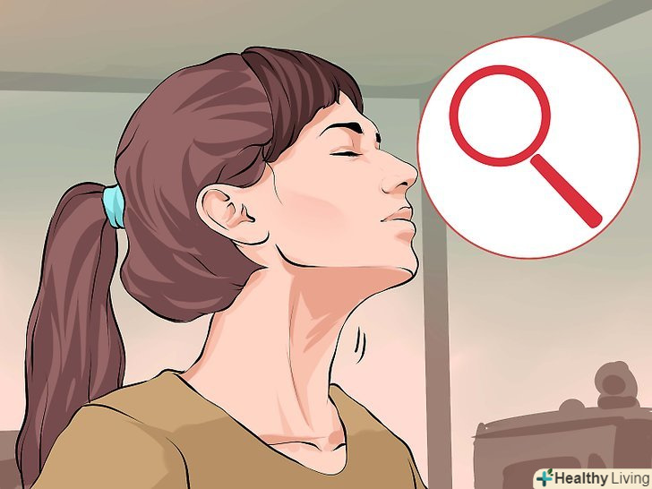 Зверніть увагу на обмеженість або набряк в уражених місцях.іноді буває складно виявити зовнішні ознаки набряку в голові і шиї, але перші симптоми лімфедеми в цих областях часто відчуваються. Зверніть увагу на будь-які ознаки обмеженості в голові і шиї.[21]- Вам може бути важко рухати головою, шиєю або м'язами обличчя. Може виникнути відчуття жорсткості і дискомфорту в шкірі, хоча будь-які видимі ознаки набряку можуть бути відсутніми.