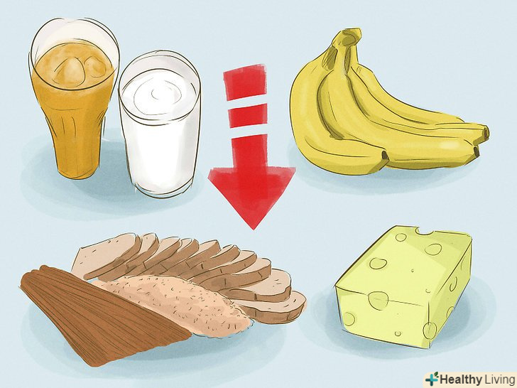 Зменшіть кількість калію та фосфору у вашій дієті.фосфор і калій — це два інших елементи, виведення яких з організму вимагає інтенсивної роботи нирок, що утруднено, якщо функції нирок вже порушені або ослаблені. Уникайте продуктів, багатих цими елементами; якщо ви приймаєте будь-які харчові добавки, перевірте, щоб їх складі не було ні фосфору, ні калію.- Продукти, які містять багато калію: зимовий гарбуз, солодка картопля, картопля, біла квасоля, йогурт, палтус, апельсиновий сік, брокколі, диня канталупа, банани, свинина, сочевиця, молоко, лосось, фісташки, родзинки, куряче м'ясо, тунець.[7]