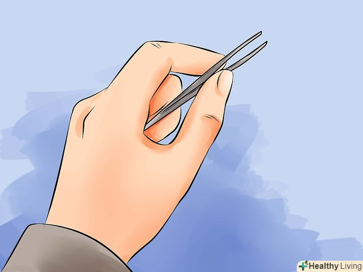 - Підніміть куточок врослого нігтя стерильним пінцетом і акуратно підкладіть зубну нитку або шматочок ватного тампона. Перш ніж підкладати ватний тампон або нитку, на них можна нанести антисептичну мазь, наприклад Неоспорин.