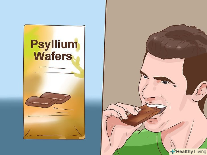 Приймайте вафельки псілліума, якщо ви не можете приймати лушпиння у вигляді порошку.крім того, це більш підходящий варіант, якщо вам не подобається приймати препарати в рідкому вигляді. Відкусіть шматочок вафельки і добре прожуйте її. Запийте склянкою соку або води. Завдяки цьому корисна речовина досягне шлунка. [10]