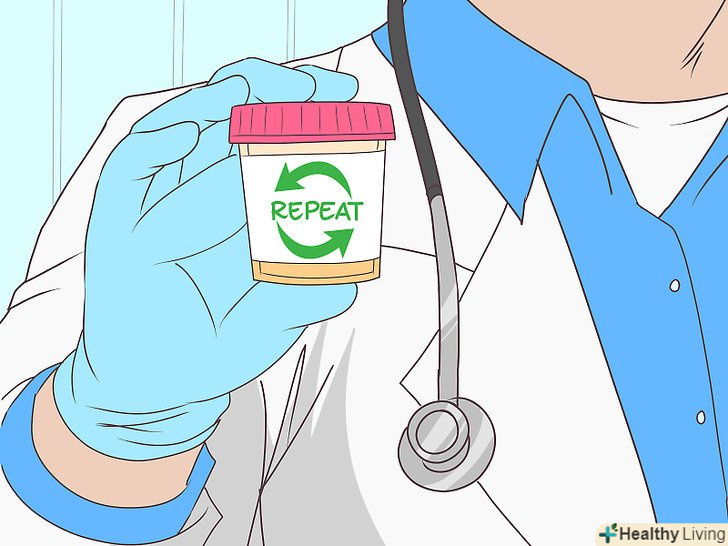 Здайте повторний аналіз сечі. [11] необхідно повторно здати аналіз сечі. Дуже важливо отримати ряд показників рівня білка в сечі, щоб зрозуміти, як йде ситуація і чи поліпшується ваш стан. Лікар попросить вас здати аналіз сечі в Вбиральні в його клініці або принести його з дому і віднести зразок в лабораторію. Якщо будете зберігати його вдома, покладіть зразок в холодильник, поки не доставите його в лабораторію для аналізу.