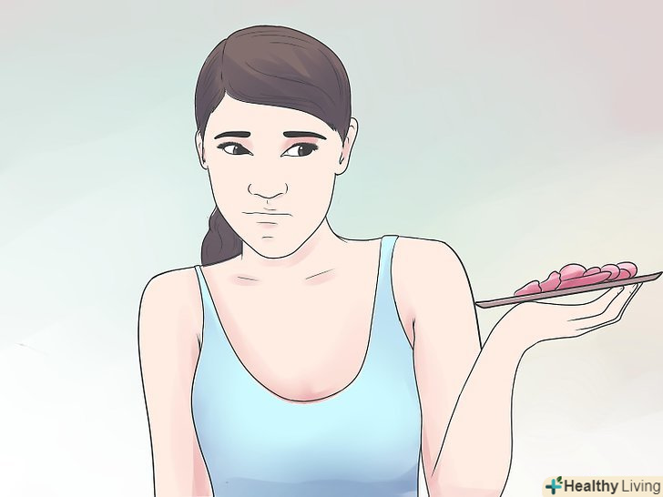 Спробуйте методом виключення продуктів зі свого раціону встановити, чи є у вас алергія на певні продукти харчування. якщо вам здається, що у вас харчова алергія, то ви можете поговорити з лікарем про те, щоб виключити певні продукти зі свого раціону, які можуть викликати алергію. Цей спосіб діє за наступним принципом: потрібно зосередитися на тому, щоб усувати певну групу продуктів харчування щотижня, так можна визначити причину виникнення алергії. Потрібно по черзі вживати групи продуктів, поки не з'ясується, яка їжа викликає симптоми. [13]- Зазвичай викликають алергію такі продукти: яйця, горіхи, пшениця, молоко і соя.