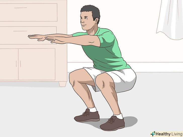 Виконуйте присідання. це вправа, в якому коліна знаходяться на невеликій відстані один від одного. Потім ви опускаєте свої сідниці, нібито сідаючи в крісло. Звучить легко, але на практиці все значно складніше. При правильному виконанні це відмінна вправа для збільшення ЧСС і підтримки в формі основних м'язів тіла, завдяки чому вам буде легше сидіти з прямою спиною.