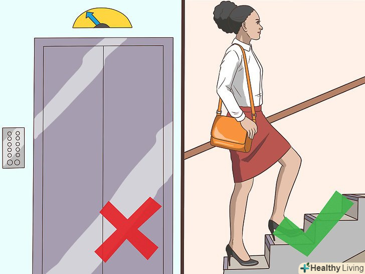Змініть свою позу, в якій ви сидите. Пересядьте зі звичайного крісла на м'ячик для вправ. У цьому випадку ваші м'язи будуть автоматично напружуватися, щоб утримати рівновагу і зберегти пряме положення спини. Ви навіть можете взагалі утримуватися від сидячого положення, намагаючись проводити в стоячому положенні максимум часу, якщо це можливо. Навіть такі незначні зміни нададуть позитивний вплив на ваше серце.- Внесіть зміни в звичні методи добиратися в різні місця. не прагніть припаркувати машину ближче до роботи або входу в продуктовий магазин, навпаки, залиште її в найвіддаленішому кутку парковки. Забудьте про ліфти, піднімайтеся сходами (хоча б 1-2 прольоти, якщо подолати всю відстань занадто важко). Взагалі намагайтеся бути активним, і ЧСС збільшиться.