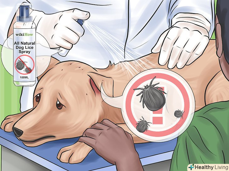 Лікуйте собачі воші.собачі воші не передаються людям (людські воші не передаються собакам), але вони можуть доставляти дискомфорт вашому вихованцеві. Існує два види собачих вошей. Різні види, що вражають собак це-волосоїд собачий (Trichodectes canis) і собача воша (Linognathus setosus). [3]- Відведіть вашу собаку до ветеринара. Важливо переконатися, що у вашої собаки воші.