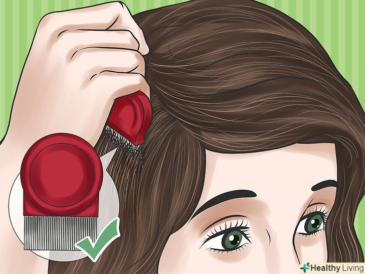 Вичешіть з волосся мертвих вошей і гнид.цей крок допоможе прискорити процес лікування, якщо ви використовуєте педикуліцид, але ви також можете позбутися вошей, використовуючи тільки гребінь проти вошей і гнид. Такий гребінь дуже зручний інструмент, який спеціально розроблений для видалення гнид і мертвих вошей.- Розділіть волосся на пасма.