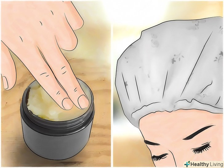 - Нанесіть суміш на волосся, надіньте шапочку для душу і пов'яжіть поверх неї рушник. [18]