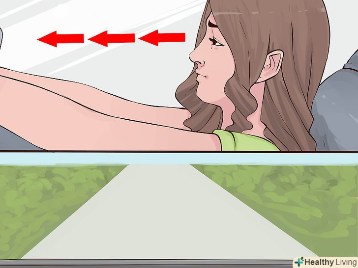 Сидіть на передньому сидінні. лікарі вважають, що хвороба руху обумовлена конфліктом між тим, що бачать наші очі, і тим, як наш організм тлумачить рух автомобіля за сигналами, які виникають у внутрішньому вусі для контролю рівноваги. [2] наприклад, якщо очі бачать перед собою автомобільне крісло, але організм відчуває повороти на дорозі або швидкість пересування, то внутрішнє вухо може дати збій. Це призводить до запаморочень і нудоти, які так часто зустрічаються при автомобільній хворобі. [3] щоб уникнути такої ситуації спробуйте зосередитися на дорозі, щоб очі і організм могли тлумачити однакову інформацію. Сидіть на передньому сидінні, щоб зменшити ймовірність розбіжностей між візуальною та сенсорною інформацією.- За кермом ми отримуємо додаткову перевагу у вигляді можливості зосередитися на Русі і відволіктися. [4]