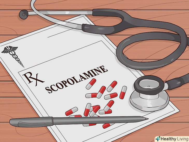 Попросіть лікаря виписати вам скополамін. скополамін безпечний тільки для дорослих, але не для дітей. [31] він відпускається тільки за рецептом і клеїться на пластирі за вухом. Пластир слід приклеїти за чотири години до початку поїздки. Незважаючи на ймовірність сильних побічних ефектів на зразок нечіткого зору і сухості в роті, препарат ефективно бореться з нудотою при хворобі руху. [32] обговоріть засіб з лікарем.