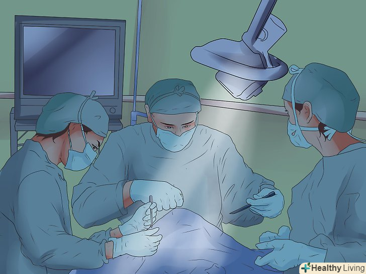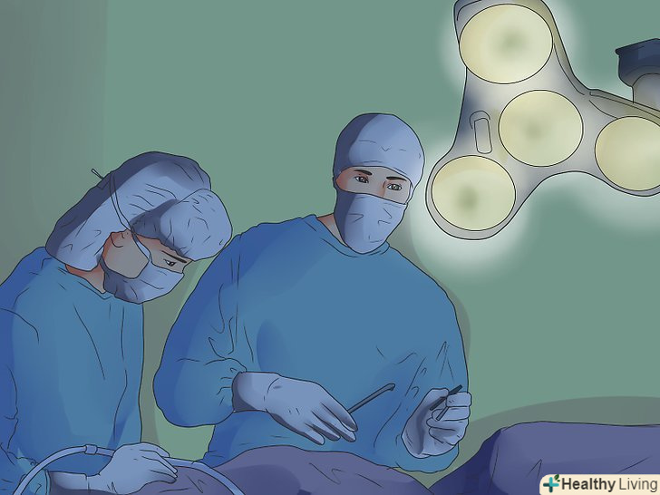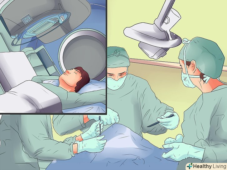 Зробіть циторедуктивну операцію.ця операція проводиться на більш пізніх стадіях тимоми, коли неможливо видалити всю пухлину. Під час процедури, якщо представляється така можливість, намагаються видалити більшу частину пухлини - це допомагає усунути деякі із симптомів. Ця операція може включати видалення частини легені або внутрішньої оболонки легенів в тих випадках, коли пухлина поширилася на ці області. [2]- Деяким пацієнтам після циторедуктивної операції можуть призначити променеву терапію, щоб знищити ракові клітини, які могли залишитися після операції.