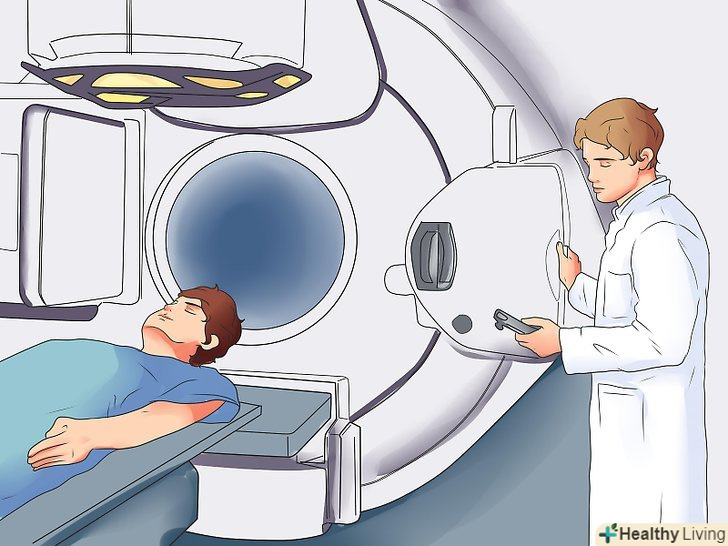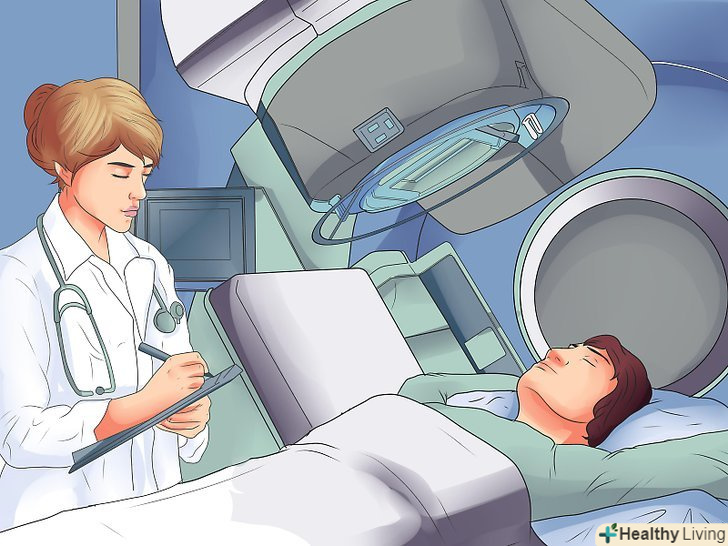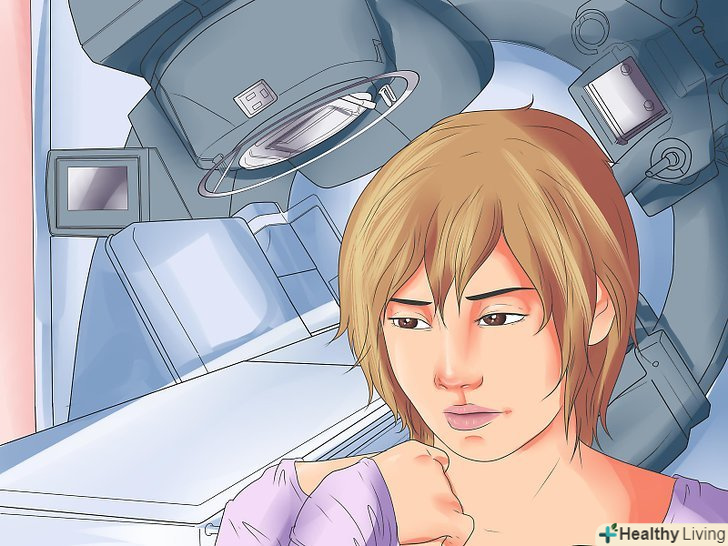 Пройдіть зовнішню променеву терапію.найбільш поширений тип опромінення - це зовнішня променева терапія (НЛТ). При цьому використовується апарат утворює рентгенівські промені, як при звичайній рентгенівської процедурі, тільки цими рентгенівськими променями виробляють опромінення. [4]- Ця процедура безболісна, проте вона має багато побічних ефектів, таких як: втома, почервоніння шкіри, втрата ваги внаслідок поганого апетиту, нудота і блювота. Це все через підвищену кількість радіації, яка шкодить нормальним клітинам разом з раковими.
