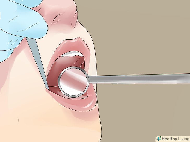 Пройдіть обстеження порожнини рота, щоб виявити і діагностувати всі аномалії і патології. під час обстеження лікар перевірить стан слизової оболонки порожнини рота.- Стоматолог пропальпує порожнину рота (не бійтеся, його руки будуть в рукавичках), в тому числі щоки, губи, язик, небо і дно ротової порожнини, а також бічні сторони язика в пошуках ущільнень, пухлин і змін текстури поверхні тканин.