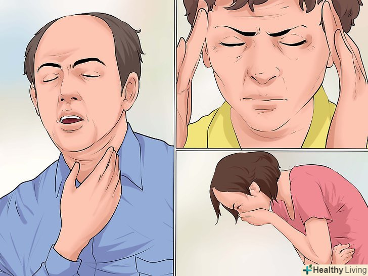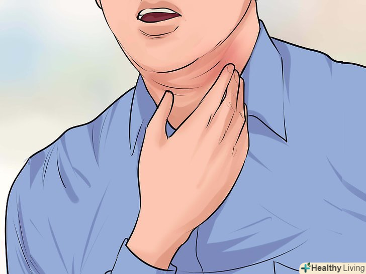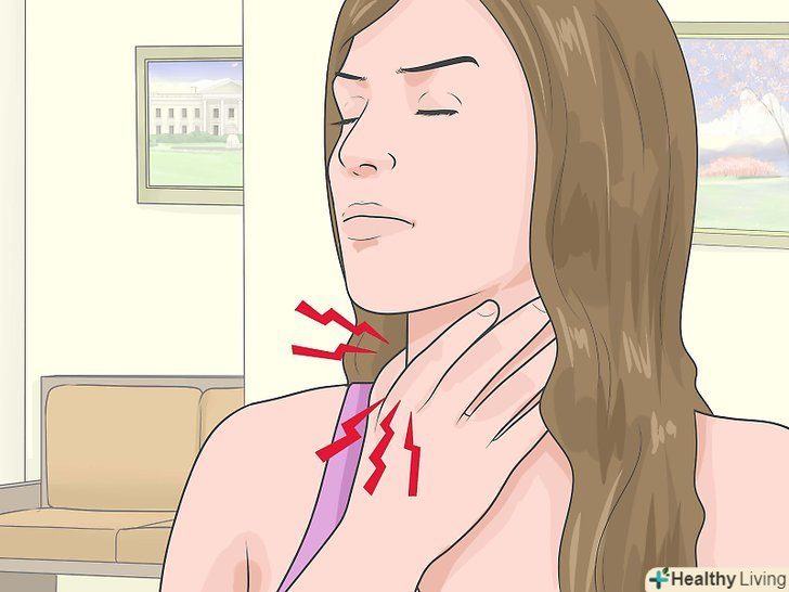 Зверніть увагу на біль і кровоточивість. зверніть увагу на біль і кровоточивість в ротовій порожнині або глотці. Такі симптоми свідчать про серйозні порушення, в тому числі про рак горла. [22]- Зверніть увагу на тривалі болі в горлі, особливо при порушенні ковтання.