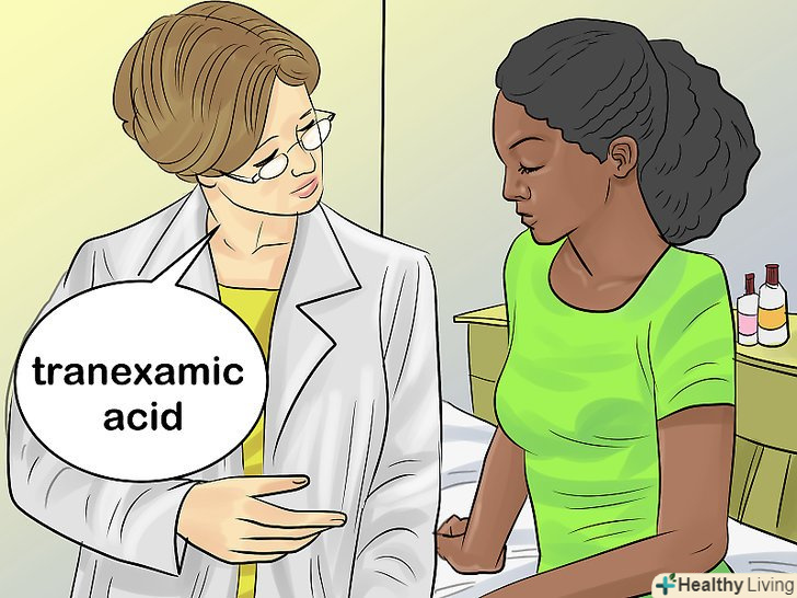 Дізнайтеся у лікаря про транексамовой кислоті. препарати з транексамовою кислотою знижують кровотечі під час менструацій. Їх необхідно приймати тільки тоді, коли у вас менструація, а не протягом усього місяця, як контрацептивні препарати. Так, ви зможете зменшити кровотечу і кількість згустків крові. [18]