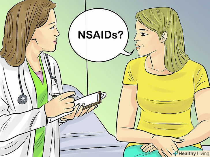 Уточніть у лікаря про можливість прийому НПЗП. НПЗП-це клас знеболюючих препаратів, таких як ібупрофен і напроксен. Ці препарати допомагають полегшити болі, пов'язані з менструаціями. При цьому вони також знижують кількість крові, що втрачається при менструації, а це в свою чергу може зменшити кількість згустків. [13]- Проте, під час прийому НПЗП потрібно уважно стежити за посиленням кровотечі. На жаль, НПЗП дають саме такий побічний ефект у багатьох жінок. [14]