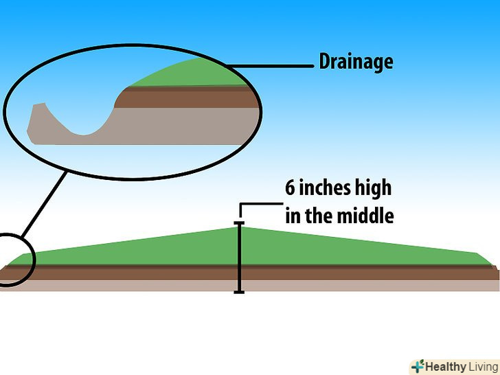 Посередині смуга повинна бути на 6 дюймів (15,24 см) вище, щоб поліпшити дренаж.при необхідності стабілізуйте її за допомогою верхнього шару грунту і посіву трави.