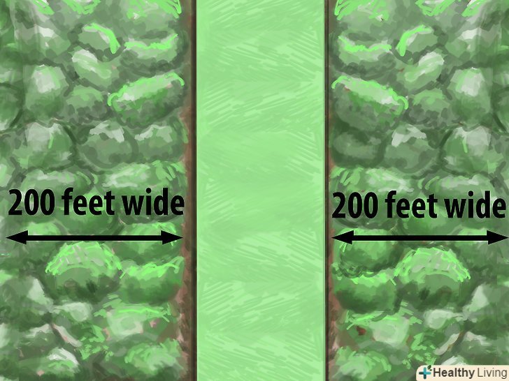 - 200 футів (60,96 м) завширшки в лісистих районах