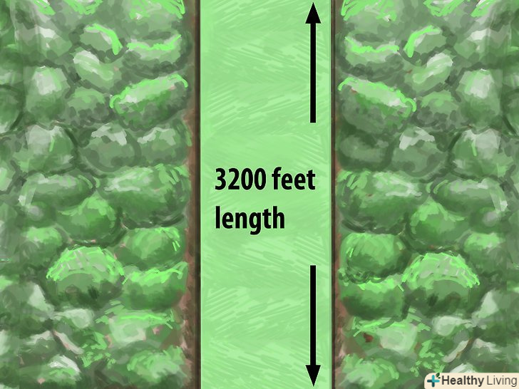 - Ширина 75 футів (22,86 м) на відкритій трав'янистій місцевості