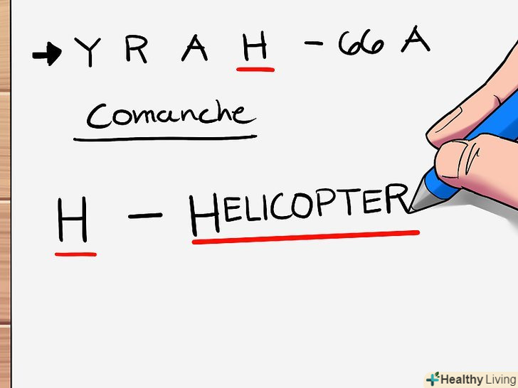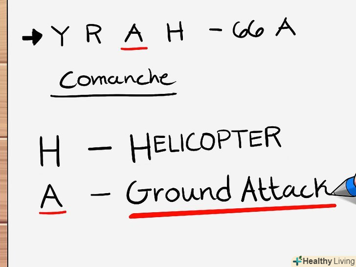 Практика.Прочитайте наступні MDS позначення і подивіться, чи можете ви їх зрозуміти. Відповіді в нижченаведених радах. Деякі позначення можна розшифровувати довго, але якщо ви починаєте з дефісу і читаєте назовні вліво, ви повинні зрозуміти призначення будь-якого літального апарату.- AH-12