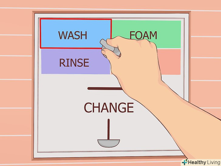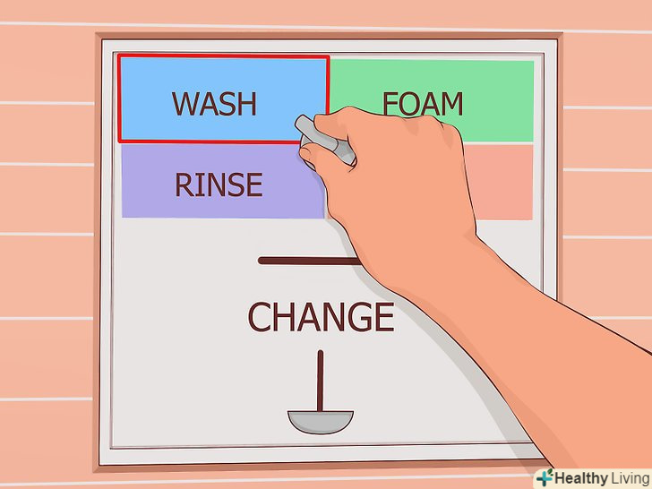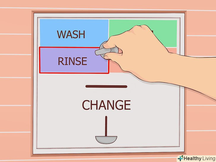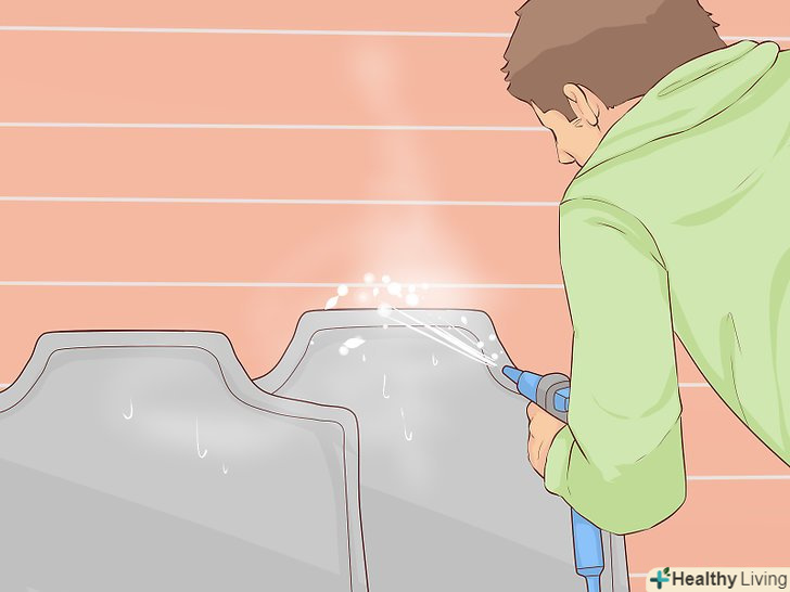 Переключіть стрілку на стадію промивання і почніть змивати мильний розчин.якщо ви працюєте швидко, піна не встигне засохнути і утворити плівку. Якщо деякі місця підсохли, протріть їх ганчіркою, а потім промийте водою, після чого не протирайте ганчіркою знову. Не забудьте про килимки.