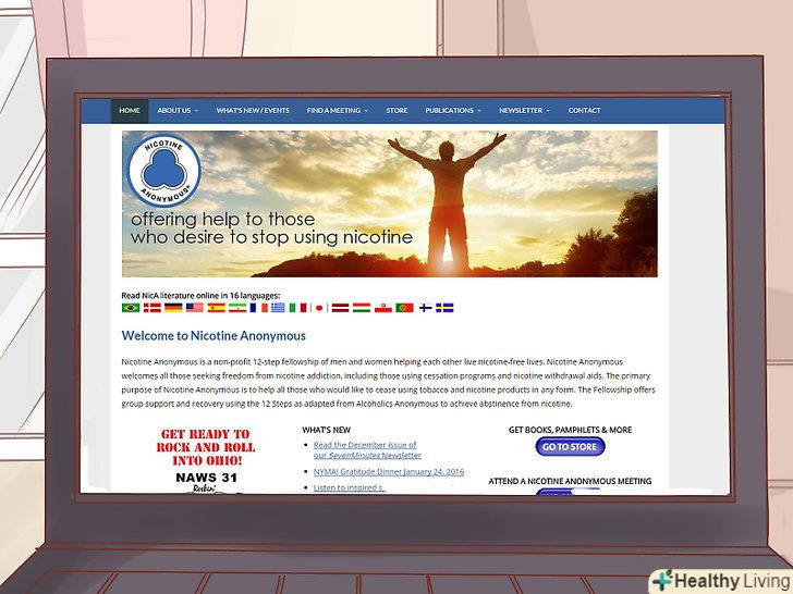 Знайдіть групи підтримки.спілкування з тематичними групами підтримки (наприклад, з товариством анонімних алкоголіків або суспільством відмови від куріння) може бути корисним.[34] іноді буває важливо розповісти про свої спроби кинути пити або курити, а також поділитися своїми почуттями в суспільстві розуміють і підтримують людей, а потім послухати про досвід інших людей, можливо, знайти в їх розповідях для себе щось корисне.