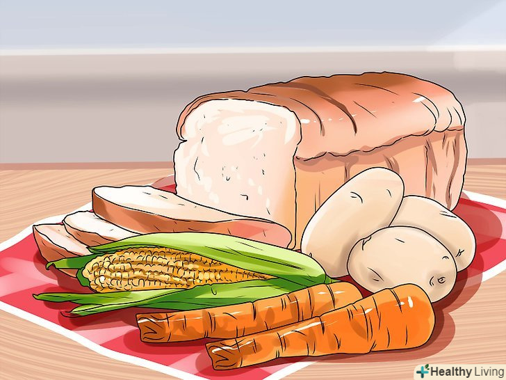 - Збільште споживання простих вуглеводів за допомогою фруктів і споживання складних вуглеводів за рахунок хліба з цільного зерна, картоплі, кукурудзи, гороху, пастернаку, сочевиці, квасолі і горіхів.[10]
