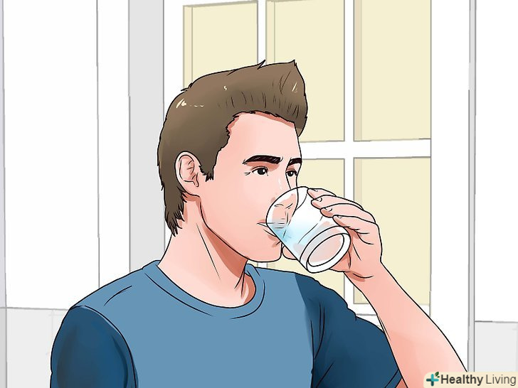 Допоможіть організму вимити токсини, споживаючи велику кількість води.необхідна кількість води буде залежати від розміру вашого тіла і клімату, в якому ви живете.- Якщо ви рідко мочитеся або у вас каламутна або темна сеча, це говорить про те, що ви не споживаєте достатню кількість води.[17]