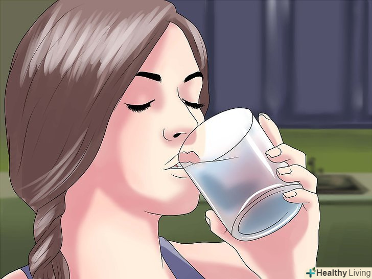 Пийте більше рідини.пийте більше води, щоб з організму вимивалися токсини, а голова боліла рідше. Імбирна або проста газована вода простіше засвоюються. Якщо вас нудить, замініть ними звичайну воду. Пийте якомога частіше.[6]- Щоб послабити головний біль, приймайте болезаспокійливі засоби (ібупрофен, ацетамінофен) і прикладайте до голови лід.