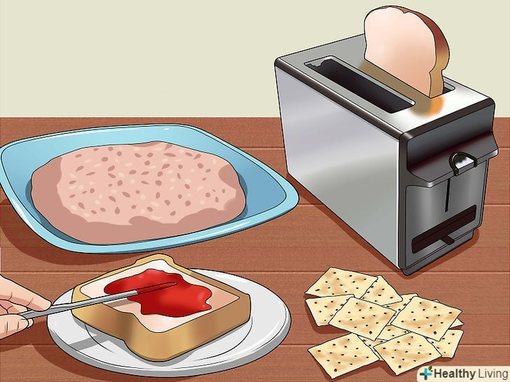 Їжте їжу, яка легко засвоюється.швидше за все, вас буде нудити. Прості вуглеводи на зразок крекерів, рису і тостів будуть швидко перетравлюватися. Яблучне пюре і банани наситять вас і заспокоять шлунок.[7]- З нудотою можна боротися за допомогою імбирного чаю і антацидів.