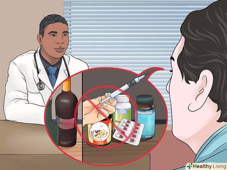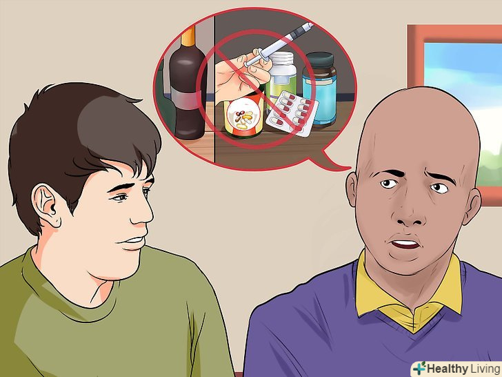 Почніть відмовлятися від алкоголю або наркотиків.утримання від алкоголю або наркотиків-це не те ж саме, що лікування. Щоб приступити до лікування, необхідно якийсь час не приймати стимулюючі речовини, щоб організм зміг функціонувати без них. На це може піти кілька днів або тижнів.- Програми по відмові від речовин бувають різними, оскільки все залежить від типу залежності. При алкогольної та наркотичної залежності часто потрібно спостереження лікаря, оскільки через відмову від стимулюючих речовин людина відчуває сильні хворобливі відчуття.[2]