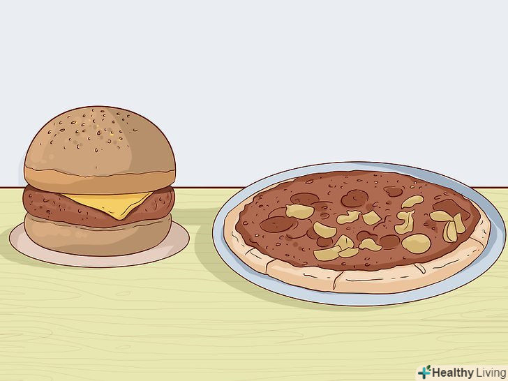 Принесіть йому трохи їжі.жирні продукти, наприклад чізбургер або піца, допоможуть притупити вплив алкоголю і уповільнити його всмоктування з шлунка в кров. Прийом їжі не зменшить кількість алкоголю в крові, але це може поліпшити самопочуття людини і скоротить подальше вбирання спиртного в організм.[11]- Не давайте занадто багато їжі, щоб не викликати переїдання або блювоту. Чізбургера і декількох скибочок картоплі фрі буде достатньо — не дозволяйте людині з жадібністю поїдати всю піцу і 3 гамбургера, так як це збільшить ймовірність того, що у нього почнеться блювота.