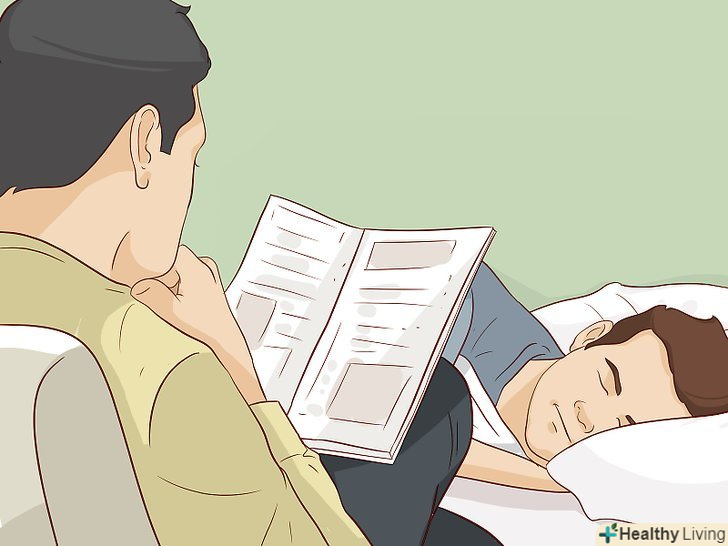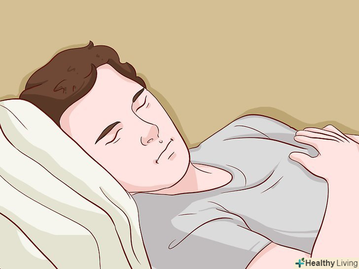 Переконайтеся, що людина спить на боці з подушкою позаду себе.якщо вам здається, що людина не піддається ризику алкогольної інтоксикації, сон може дати його організму час, необхідний для засвоєння алкоголю і виведення його з крові. Однак існує небезпека, що уві сні у нього почнеться блювота, і він задихнеться, захлинувшись блювотними масами. Завжди стежте, щоб він спав на боці з подушкою позаду себе — так він не буде перекочуватися на спину.[6]- Людина повинна спати в такому положенні, щоб блювота витікала з його рота, якщо його буде нудити уві сні.