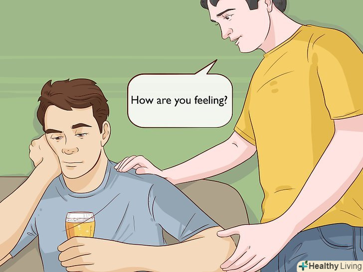 Зупиніть його від подальшого споживання алкоголю.якщо людина вже дуже п'яний, то подальше вживання алкоголю збільшує ризик алкогольної інтоксикації. Крім того, це ще більше послабить його здатність розсудливо мислити і може привести до того, що він заподіє шкоди собі або іншим людям.[9]- Намагайтеся проявляти непохитність і відмовляйтеся давати йому більше алкоголю. Скажіть щось на кшталт: "Послухай, Я думаю, що ти занадто багато випив, і я трохи хвилююся. Я не можу дати тобі ще".
