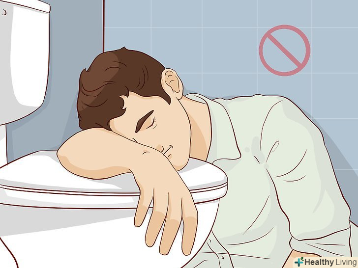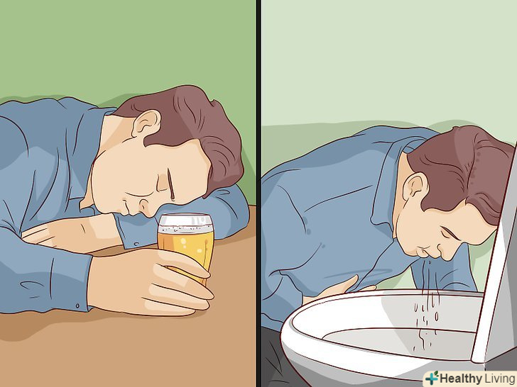 Не намагайтеся викликати блювоту.це не зменшить вміст алкоголю в крові, і єдине, до чого це призведе, — це зниження рівня рідини і подальше зневоднення. Якщо людина буде зневоднений, у його організму піде більше часу на те, щоб переварити і відфільтрувати алкоголь з системи кровообігу.[13]- Якщо людина відчує, що його нудить, залишайтеся з ним, щоб він не впав і не поранився. Блювота є природним способом організму позбутися від будь-якого алкоголю, який все ще може перебувати в шлунку.