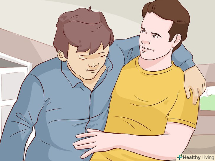 Простежте, щоб хто-небудь залишився з ним на всю ніч.якщо людина сильно п'яний, він повинен перебувати під безперервним наглядом, щоб йому не загрожували алкогольна інтоксикація або задуха власної блювотою. Хто - небудь повинен знаходитися поруч з ним всю ніч, щоб перевіряти його дихання.[8]- Якщо ви не знаєте людини, запитайте, чи можете ви зателефонувати комусь, хто може прийти і посидіти з ним.