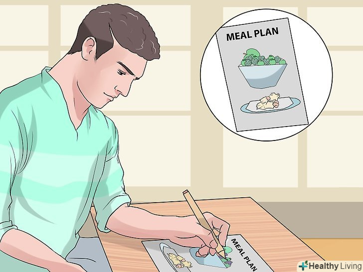 Складіть план харчування.якщо ви будете самостійно готувати їжу, то зможете простежити, щоб вона не містила ніяких алергенних продуктів. Планування свого харчування дозволить не тільки запобігти алергічну реакцію, але і отримувати всі необхідні для здоров'я вітаміни і поживні речовини.[7]- Складайте план харчування на щотижня. Звертайте особливу увагу на ті випадки, коли вам доводиться їсти не вдома (наприклад, обідати на роботі). Можна брати обід з собою. Якщо ви їсте в ресторані, уважно вивчіть меню і виберіть те, що підходить вам.