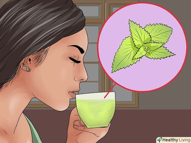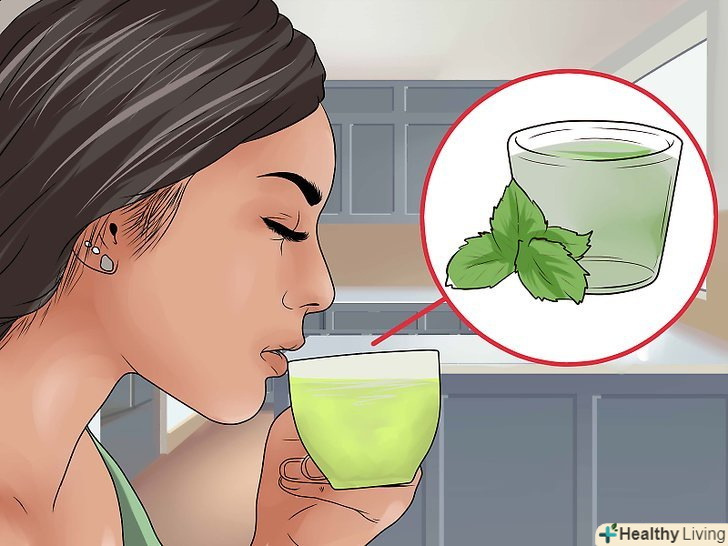 - Приготуйте чай з перцевої м'яти. Засипте 15 грамів сушеного листя перцевої м'яти в літрову банку, заповніть її на дві третини окропом і залиште на п'ять хвилин (поки чай остигає, можна вдихати його пар). Зачекайте, поки чай охолоне, процідіть його і підсолодіть за смаком.