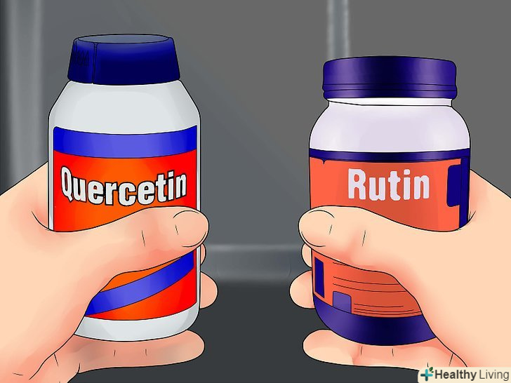Спробуйте приймати кверцетин і рутин.ці споріднені речовини містяться в багатьох рослинах. Вони відносяться до класу біофлаваноїдів. Існують свідчення того, що кверцетин і рутин захищають кровоносні судини від зайвого "протікання", знижуючи алергічний набряк. Обидві речовини мають протизапальну дію.[15]- І кверцитин, і рутин вважаються нешкідливими для здоров'я, хоча в рідкісних випадках їх прийом викликав висип і розлад травлення.