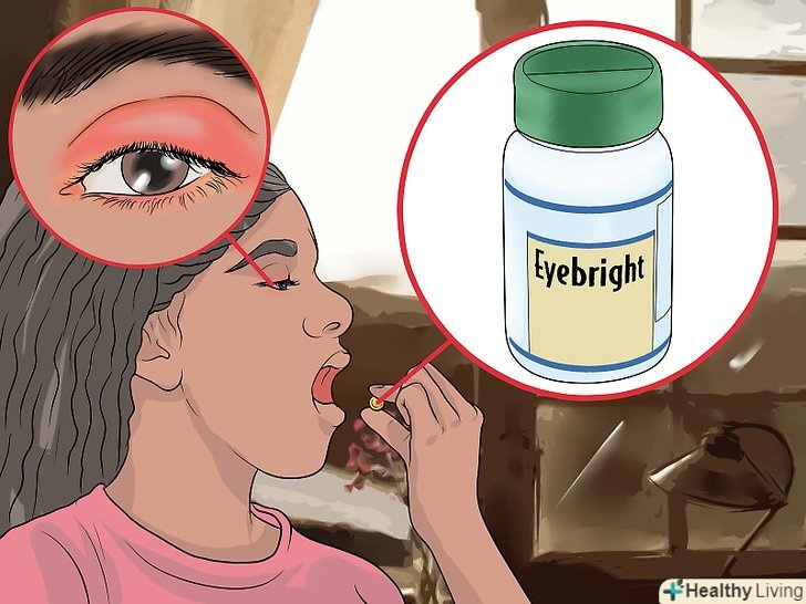 Для зняття запалення і подразнення очей використовуйте очанку.як випливає з її назви, ця лікарська трава застосовується в основному для лікування алергії та інших захворювань очей. За своєю протизапальною дією очанка порівнянна з індометацином.[19] При алергії її приймають як зовнішньо, так і перорально.- Нешкідливість очанки не доведена для вагітних.