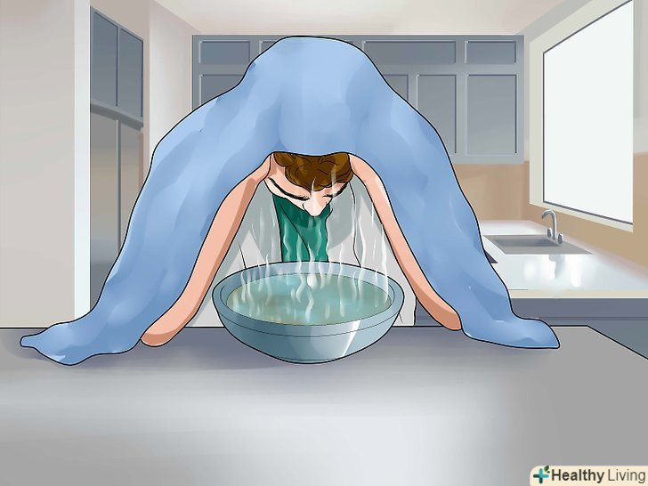 Подихайте паром.накрийте голову рушником і подихайте парою, вдихаючи його носом і ротом. Тривалість процедури залежить від вашого бажання: чим довше ви будете дихати парою, тим краще прочистятся пазухи носа.