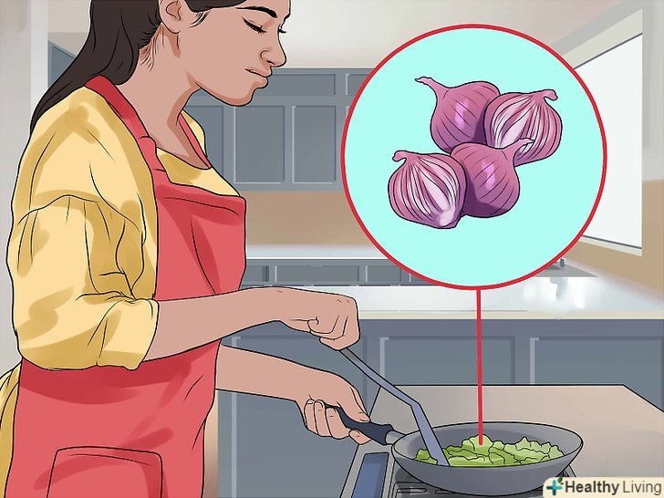Їжте цибулю, що знижує вироблення гістаміну.у цибулі міститься хімічна сполука кверцетин, яка допомагає організму контролювати вироблення гістаміну і пом'якшує симптоми пилкової алергії.[7]- Додавайте цибулю в різні страви. По можливості їжте сиру цибулю, оскільки в ньому міститься більше кверцетину.