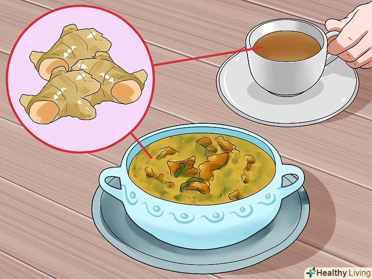 Для зниження алергічної реакції додавайте в їжу імбир.імбир має протизапальні та антигістамінні властивості, що допомагають запобігти алергічну реакцію.[8]- Заварюйте імбирний чай. Відріжте 2-3 сантиметри імбирного кореня, подавіть або натріть його на тертці і залийте склянкою окропу. Дайте чаю настоятися протягом 5 хвилин і процідіть його.