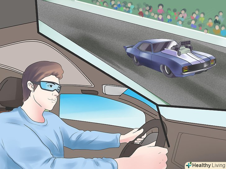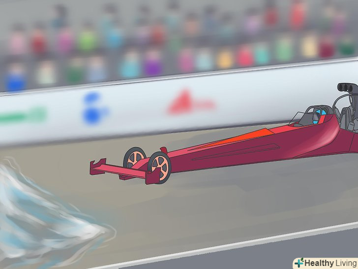 - Прискорюйтеся на фініші. Драг рейсинг не створений для прогулянкової швидкості, він створений для того, щоб подивитися, з якого тесту зроблена ваша машина. Якщо ви пройшли техогляд і знаєте свою машину уздовж і поперек, то ви повинні знати, на що вона здатна і використовувати цю можливість, щоб відкрити дросель і рвонути вперед. Втисніть педаль в підлогу і прискортеся на фініші.[8]