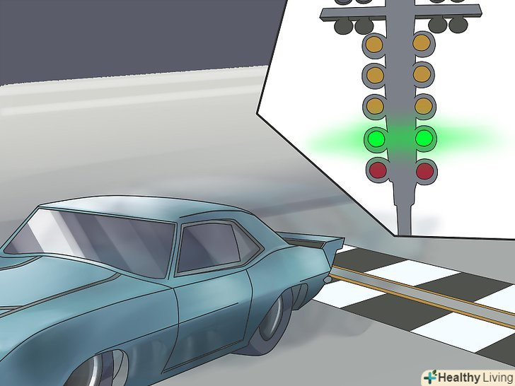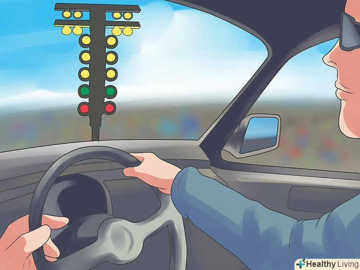 - Стартуйте на зелений. В основному, якщо ви бачите зелений, то ви рушили з місця занадто пізно. Потрібен час і навик для того, щоб добре стартувати. Адже дуже важливо вміння чекати зеленого і стартувати з ним, ніж чекати, поки він загориться. Досвідчені водії добре з цим справляються, так що не турбуйтеся, якщо у вас не вийде з декількох перших спроб, перш ніж ви звикнете.