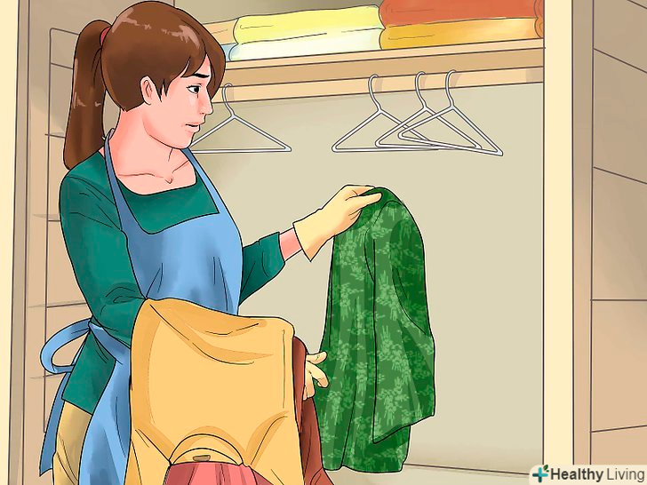 Наведіть порядок у всіх шафах.у кухонних і платтяних шафах нерідко заводиться цвіль. Перевірте, чи не протікають раковини і чи немає під ними цвілі. Очистіть і провітріть подібні місця.- Виперіть весь одяг. Після прання краще висушити одяг в сушильній машині, а не на повітрі. Крім того, протріть вологою ганчіркою все взуття.