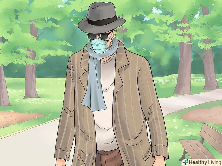 Вживайте запобіжних заходів, щоб звести до мінімуму вплив алергенів, коли вам доводиться бути на вулиці.іноді доводиться виходити з дому в сезон алергії. Є кілька способів зменшити вплив алергенів, коли ви знаходитесь на вулиці.[12]- У разі сильної алергії спробуйте надягати захисну медичну маску щоб не вдихати пилок.