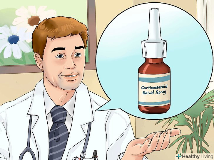 Дізнайтеся у лікаря щодо назальних кортикостероїдних спреїв.якщо безрецептурні назальні спреї не знімають нежить в сезон алергії, можна попросити лікаря виписати назальний спрей з кортикостероїдами. Такі спреї набагато ефективніше і можуть зняти закладеність носа в тому випадку, якщо вам не допомогли інші види назальних спреїв.[4]